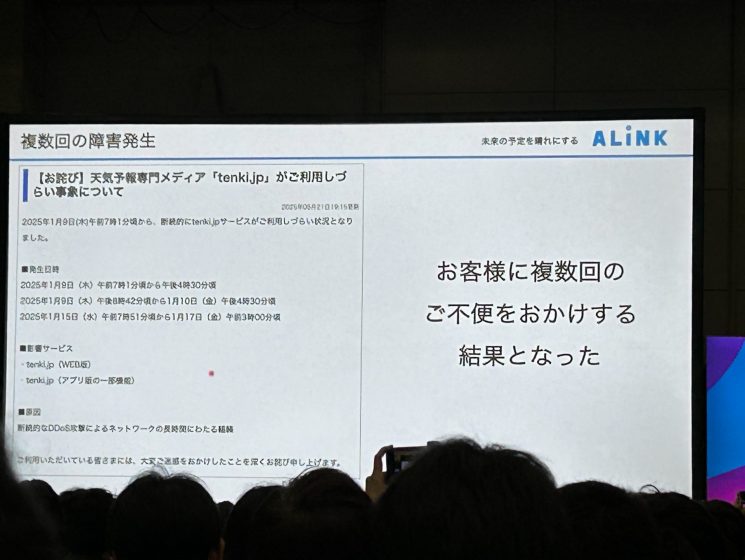 tenki.jpが直近で受けたDDos攻撃被害への対応に関するセッションでした。